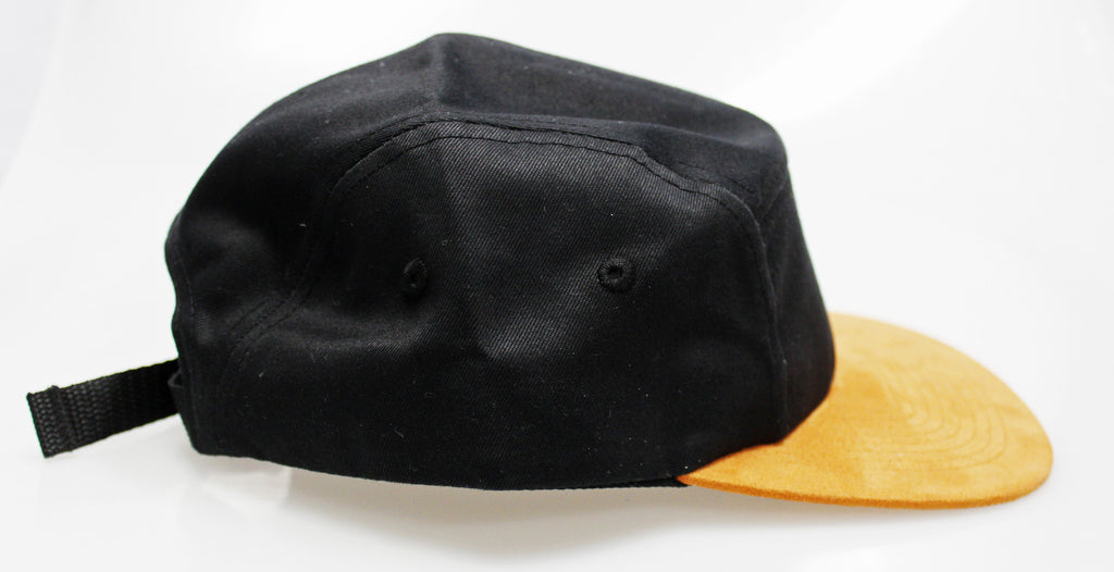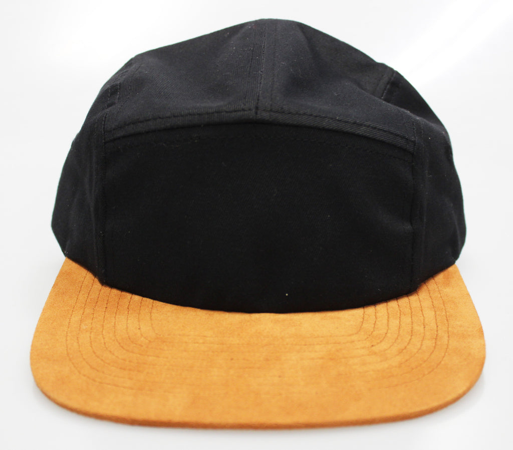 Black Cotton / Brown Suede 5-Panel Camper Hat