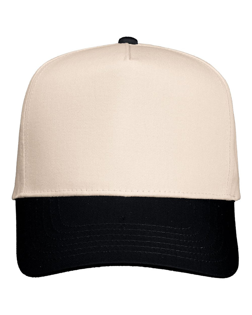 K Frame 5 Panel Twill Snapback - Khaki/ Black - Bulk-Caps Wholesale Headwear
