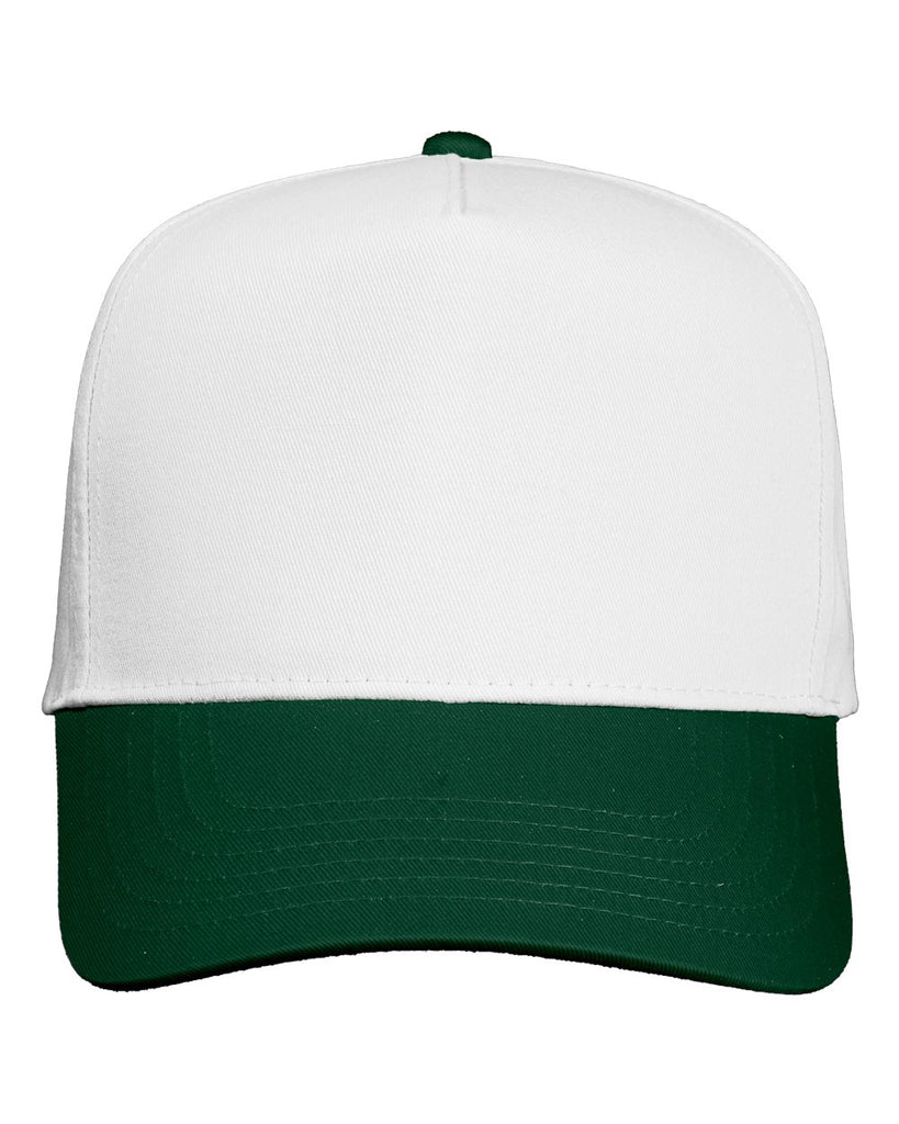 K Frame 5 Panel Twill Snapback - White/ Green - Bulk-Caps Wholesale Headwear